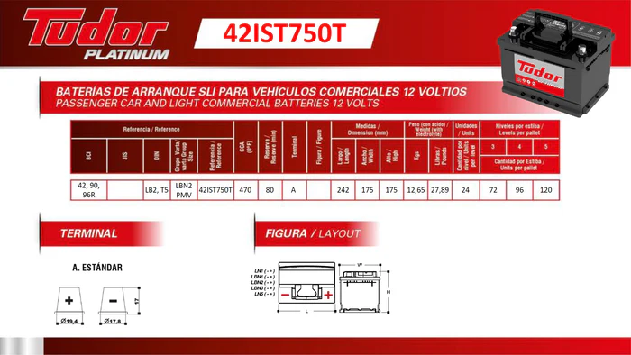 CCA -17 °C (capacidad de arranque en frio) 470Amp